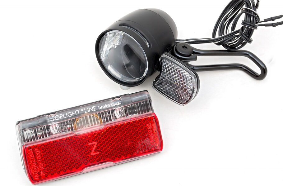 Spezieller und 170 Lux heller Scheinwerfer fürs Pedelec aus Tübingen. Mehr Informationen dazu gibt es hier. Gewicht: 130 g.