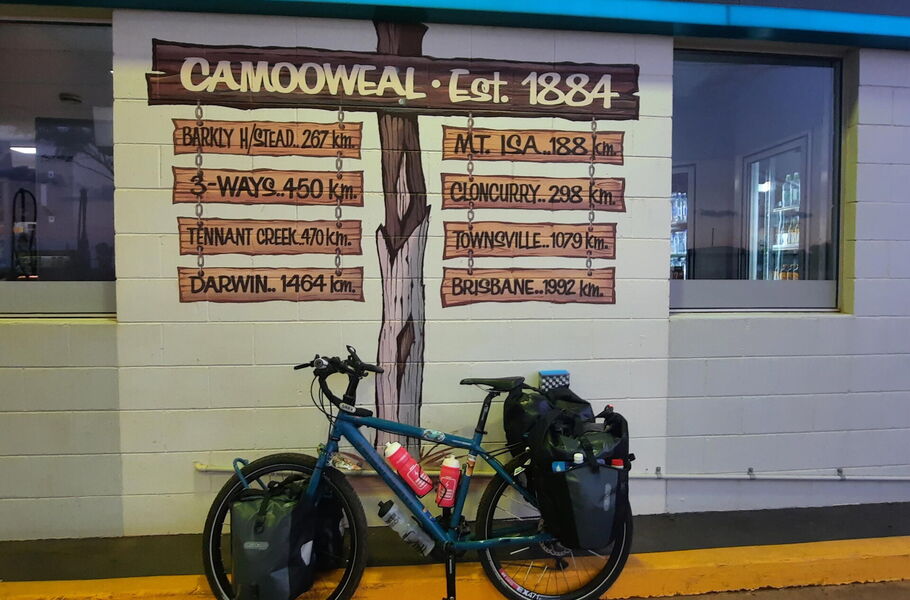 „Derzeit radel ich mit meinem velotraum-Rad durch Australien und ich bin sehr zufrieden! Ich habe das Rad schon länger, aber hier wird es richtig gefordert. Vor drei Wochen ist ein Auto über das Rad und mich gefahren, aber wir geben nicht auf. Es ist alles notdürftig geflickt und ich bin auf den letzten 2500km von Brisbane nach Darwin.“
