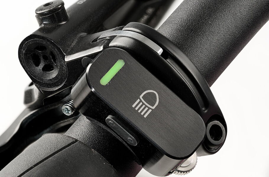 Je nach Geschwindigkeit liefert der Scheinwerfer bis zu 14 Watt aus dem Nabendynamo, das Abblendlicht ist mit 150 Lux bereits extrem hell. Wenn es aber in stockfinsterer Nacht durch Gelände abseits der Zivilisation oder über unbeleuchtete Wege geht, dann holt das zuschaltbare Fernlicht mit 200 Lux noch ordentlich was raus. Auch bei sehr langsamer Fahrt bleibt das Fernlicht dank des integrierten Pufferakkus verfügbar.