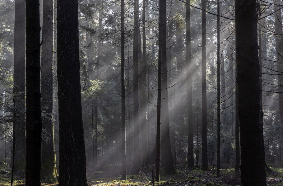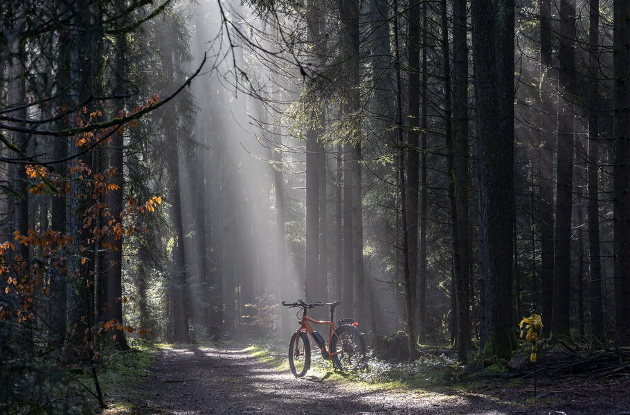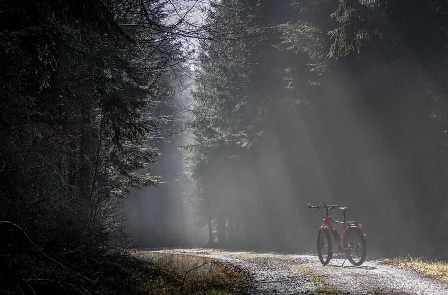 "Licht-Radeln – Unverhofft schien an diesem letzten Samstag im Januar die Sonne und die Temperaturen wanderten schnell in den einstelligen Plusbereich, so dass kaum noch mit vereisten Stellen auf meiner Runde zu rechnen war. Aus einer Intuition heraus hatte ich noch die »Knipse« eingepackt, obwohl ich für das optimale Fotografenlicht eigentlich zu spät dran war und zudem in erster Linie »nur« Rad fahren wollte. Als ich ein paar Kilometer weiter in den Gerechtigkeitswald einbog, radelte ich durch eine magische, kathedralenartige Lichtstimmung. Sie ließ die zigfach gefahrene Strecke in völlig neuem Licht erscheinen, frei nach dem Motto: Licht formt nicht die Welt, sondern ihre Wahrnehmung :-)"