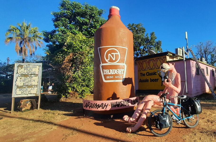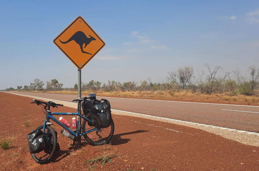 „Derzeit radel ich mit meinem velotraum-Rad durch Australien und ich bin sehr zufrieden! Ich habe das Rad schon länger, aber hier wird es richtig gefordert. Vor drei Wochen ist ein Auto über das Rad und mich gefahren, aber wir geben nicht auf. Es ist alles notdürftig geflickt und ich bin auf den letzten 2500km von Brisbane nach Darwin.“