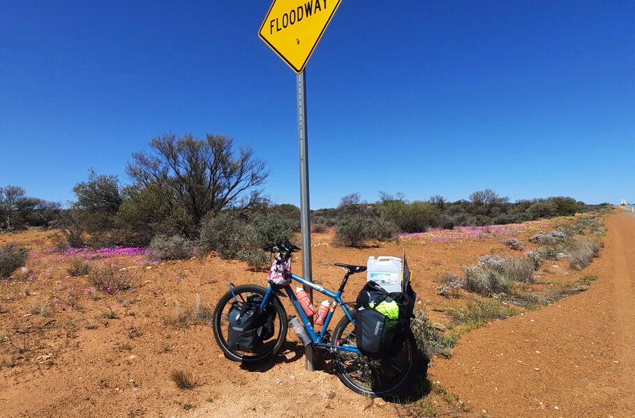 Letztendlich fuhr sie fast 8.000 km und über 30.000 Höhenmeter, sie sah Buschfeuer und Schlangen, erlebte die Gastfreundschaft der Locals, schleppte einen Riesenwasserkanister auf dem Gepäckträger ihres velotraum-Rades durch das Outback, kämpfte mit brütender Hitze am Tage, eisiger Kälte in der Nacht sowie heftigem Gegenwind.