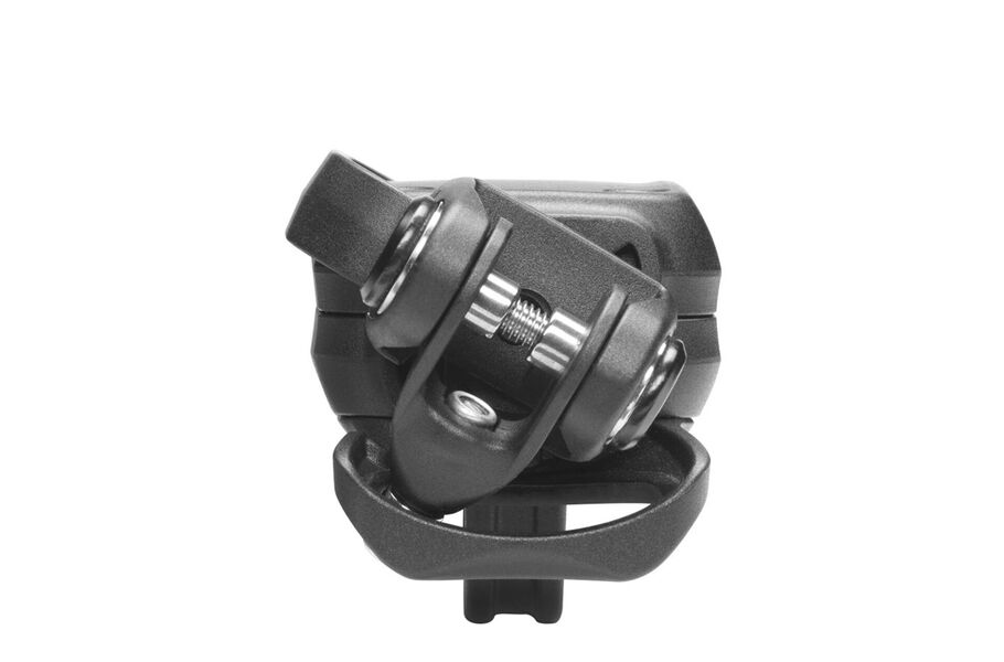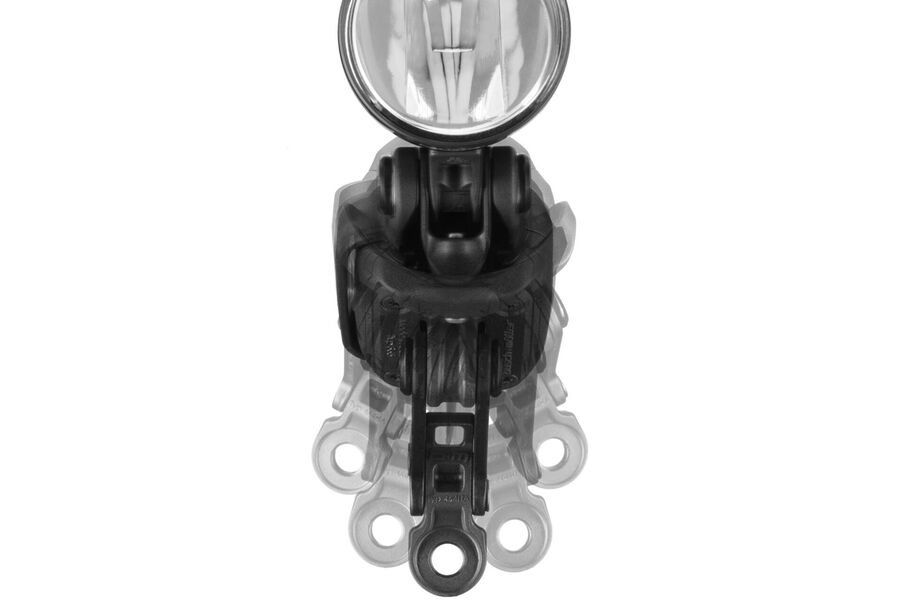 Der siebenfach kugelgelagerte Busch + Müller-Kurvenlicht-Assistent für E-Bikes sitzt zwischen Halter und Scheinwerfer und lässt sich wahlweise